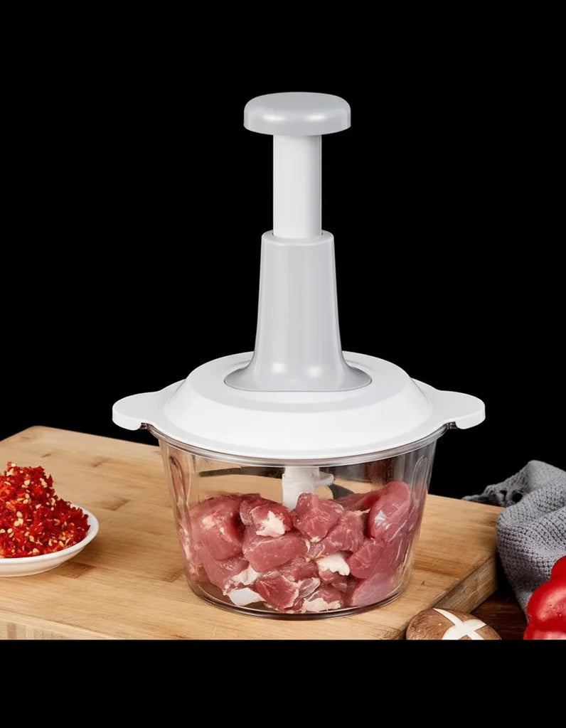Es increíblemente versátil. Desde carnes hasta verduras, nueces y hierbas, nuestro picador manual maneja una amplia variedad de ingredientes, haciendo que la preparación de comidas sea un juego de niños. ¡Tu aliado en la cocina!