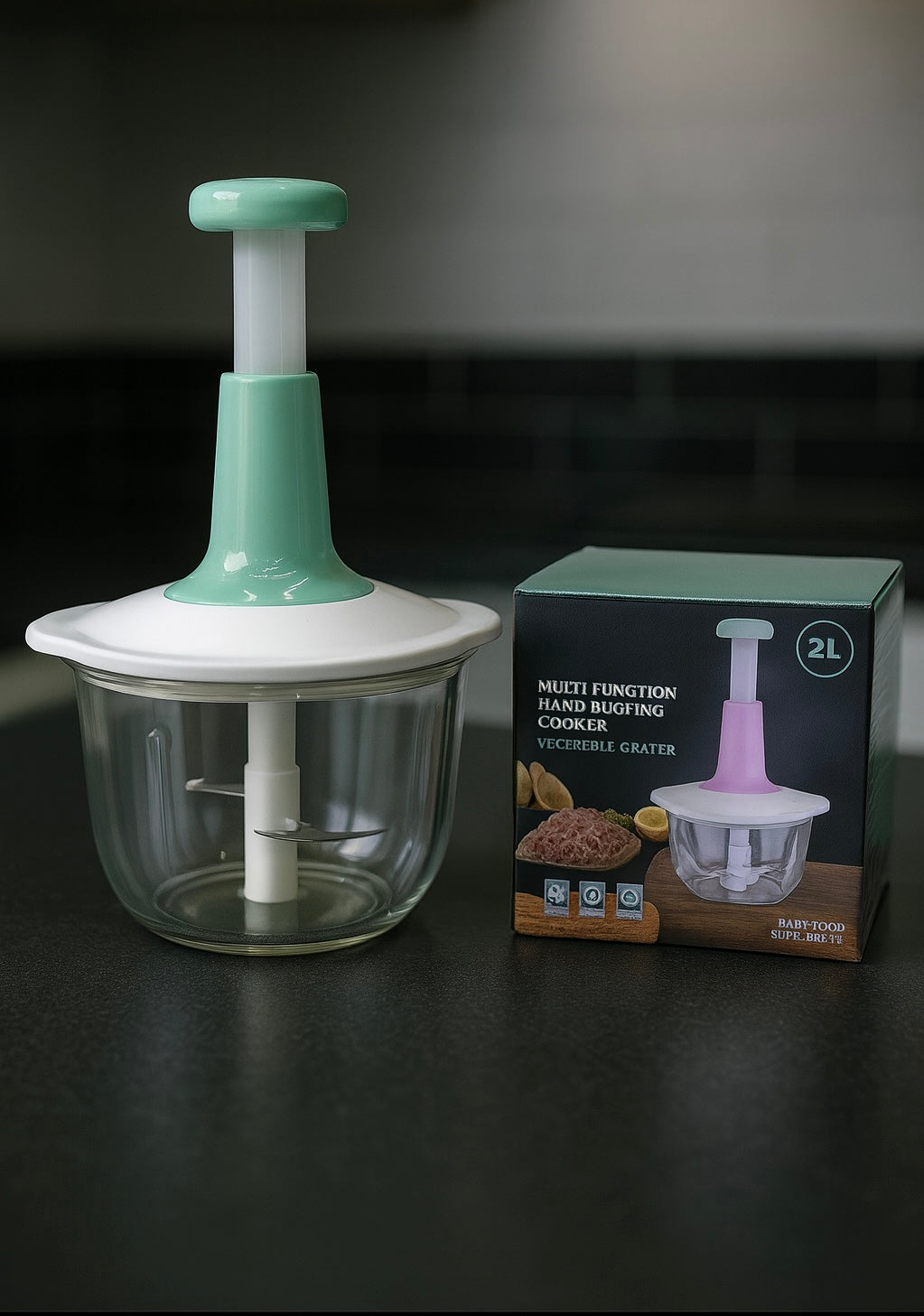 Para tareas rápidas y control preciso, nuestro picador manual es insuperable. No necesita electricidad, es silencioso y te da el control total sobre la textura. ¡Perfecto para porciones pequeñas y para mantener la paz en casa!